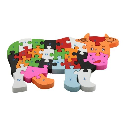 Puzzle 3D din lemn cu Numere si Alfabet – Vacuta