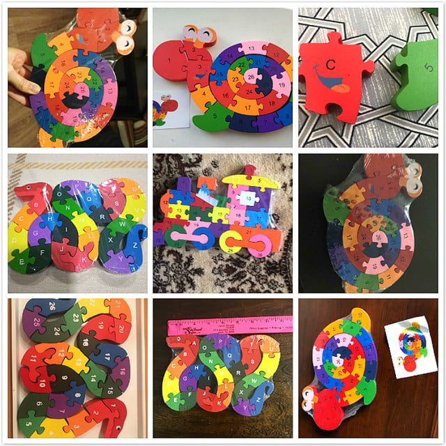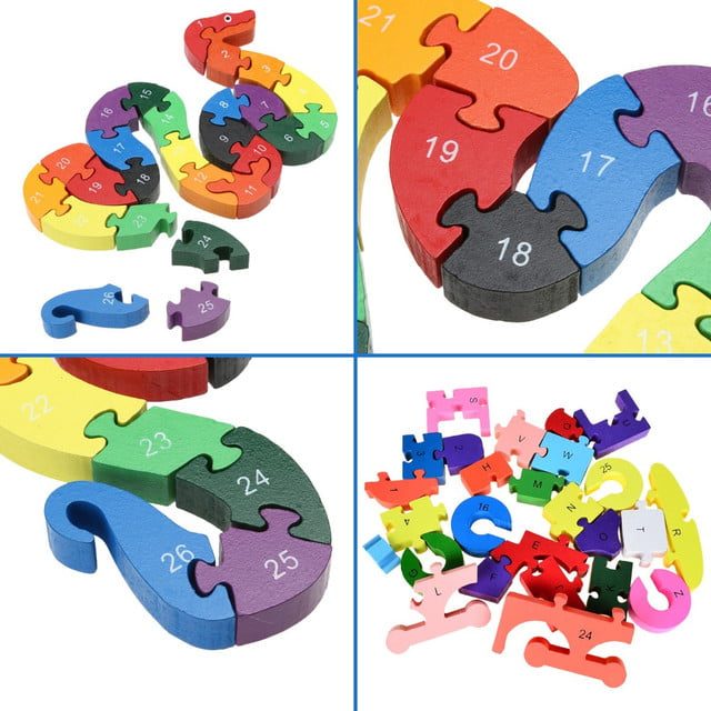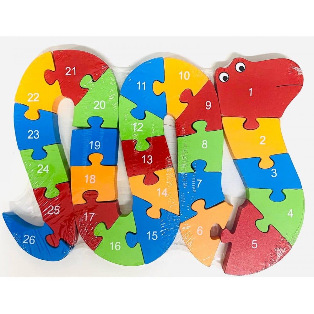 Prima pagină > Jucarii Copii > Jucarii educative > Puzzle pentru copii > Puzzle 3D din lemn cu Numere si Alfabet – Sarpe