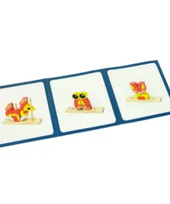 - Construcția: Fiecare piesă trebuie potrivită pe baza din lemn, urmând indicațiile cardului ales. Copiii pot începe cu modele simple și pot avansa treptat la construcții mai complexe.