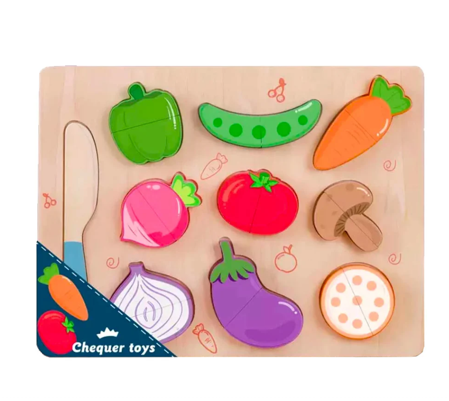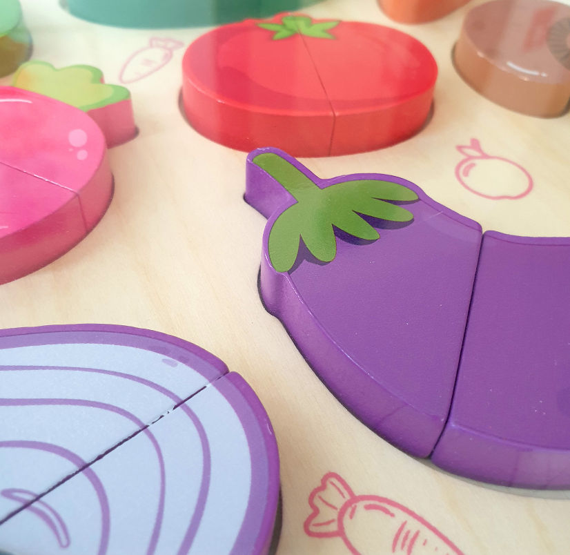 Puzzle din 2 piese, de feliat, Legume, 3 ani+