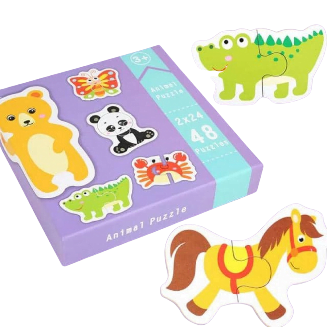 Puzzle educativ din 2 piese pentru bebelusi – Animale, 48 piese