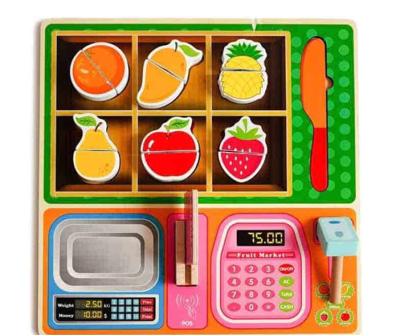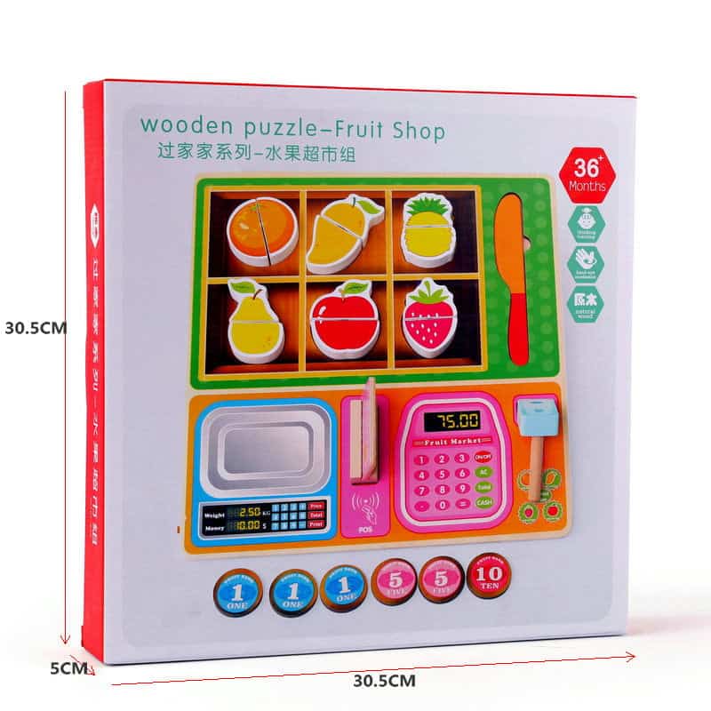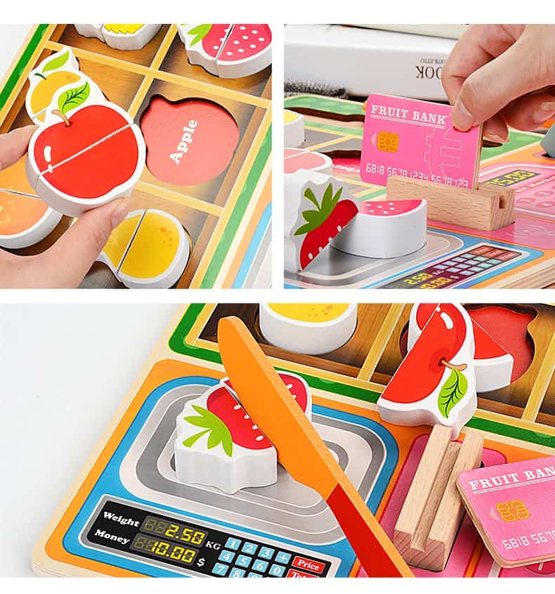 Set joaca din lemn, Magazinul cu Fructe. Puzzle incastru, Feliat legume.