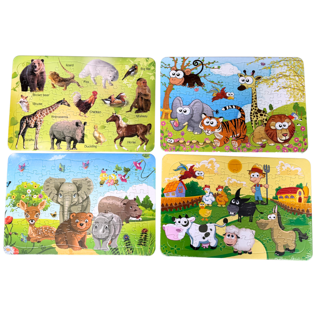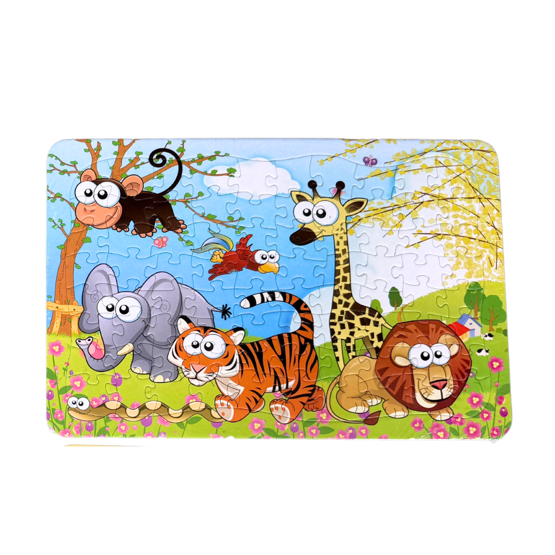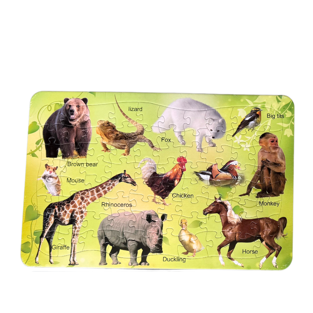Un puzzle educativ cu imagini colorate, prietenoase și ușor de recunoscut de către copii, special conceput pentru vârsta de 3 ani+. Fiecare imagine prezintă animale din diferite medii (ferma, jungla, pădurea etc.), iar după asamblare copiii pot învăța denumirile acestora, pot povesti despre habitat sau chiar colora scenele pe verso.