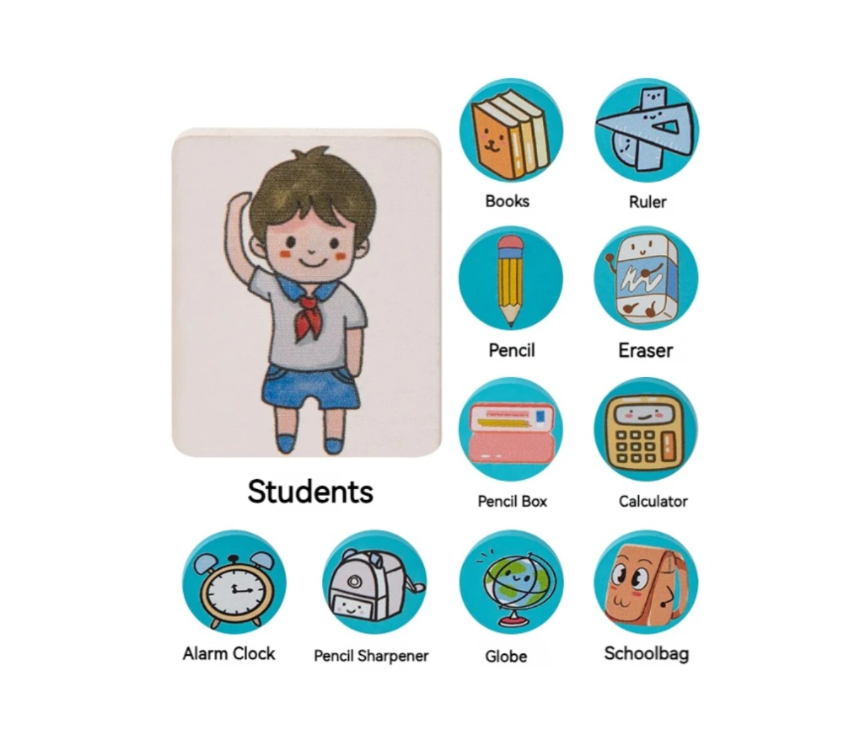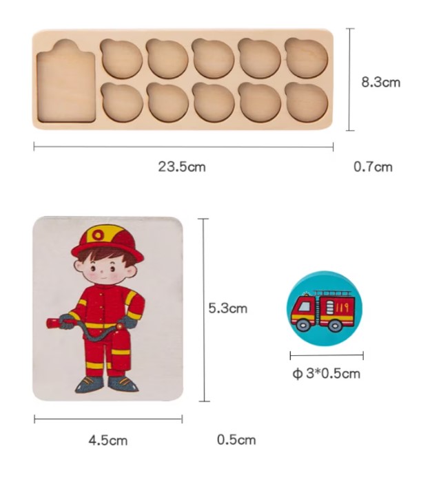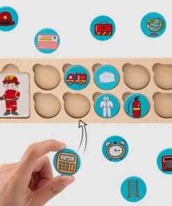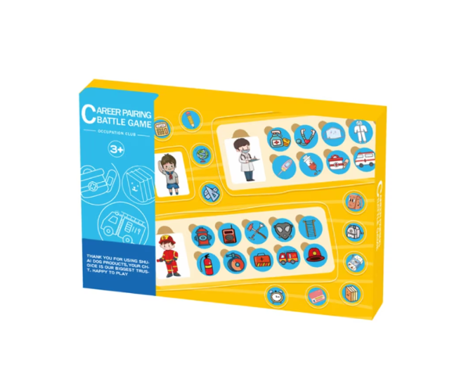Acest joc educativ de asociere îi ajută pe copii să descopere într-un mod distractiv și interactiv diverse meserii și obiectele specifice fiecărei profesii. Prin asocierea imaginilor cu personajele corespunzătoare (pompier, medic, elev etc.), cei mici își dezvoltă gândirea logică, atenția și vocabularul.