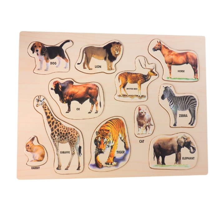 Puzzle-ul educativ din lemn cu animale este un joc interactiv care ajuta copiii sa invete si sa recunoasca diverse animale intr-un mod distractiv. Acest puzzle nu are imagine de asociere pe placa suport, ceea ce stimuleaza gandirea logica si atentia la detalii, incurajand copiii sa gaseasca locul corect pentru fiecare piesa bazandu-se exclusiv pe forma acesteia.
