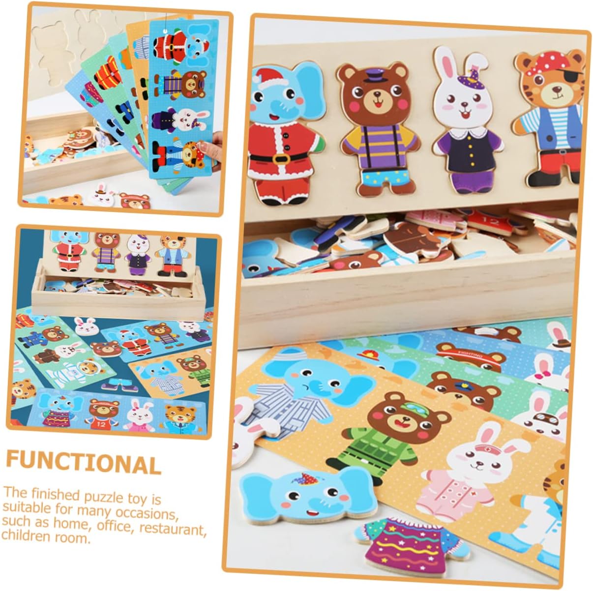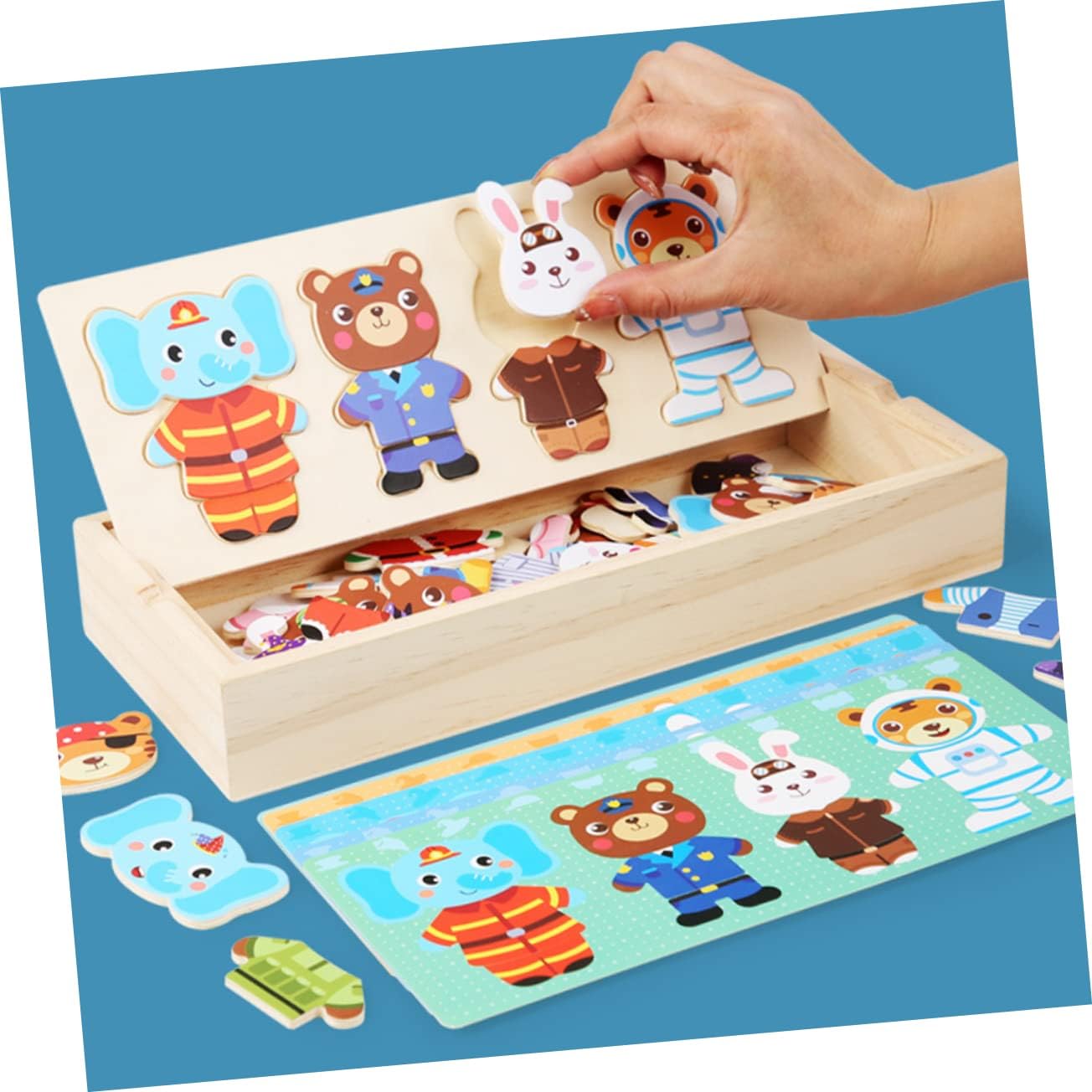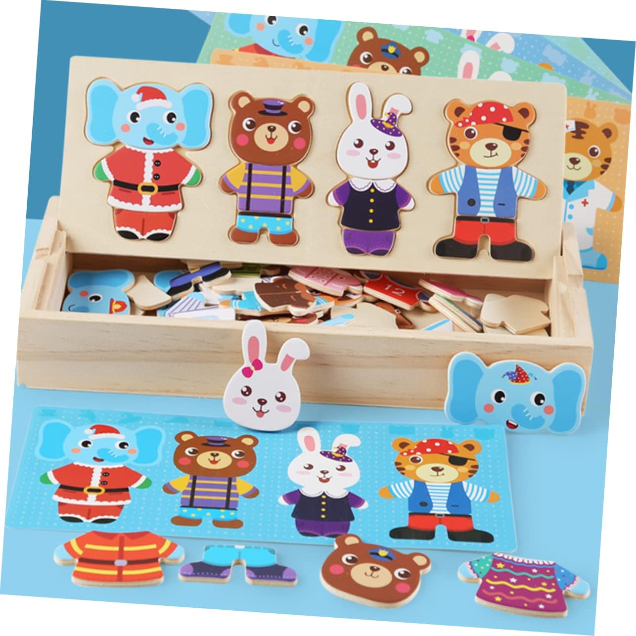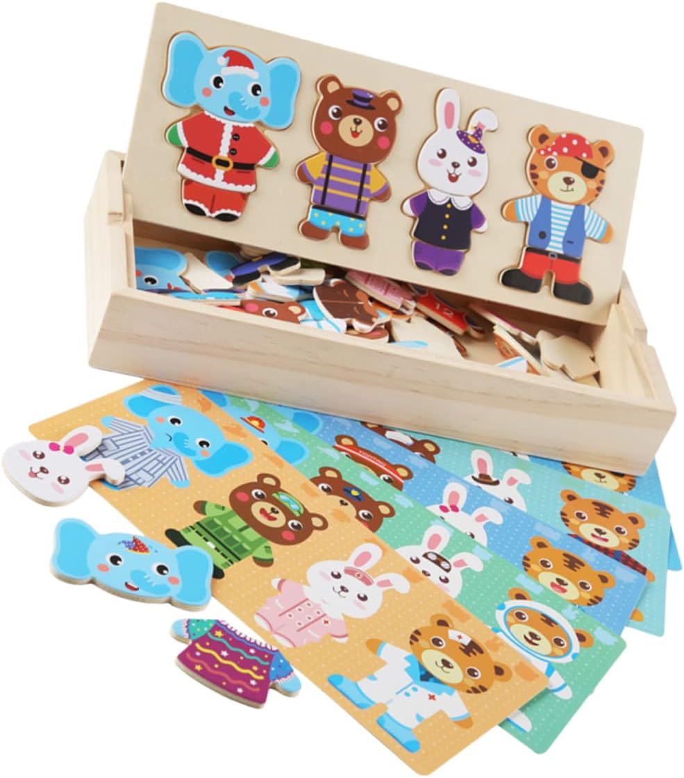 Acest puzzle educativ este perfect pentru copiii de peste 3 ani, încurajându-i să exploreze creativitatea și să dezvolte abilități motorii fine prin asocierea hainelor cu diverse personaje din familia animalelor. Jucăria vine sub forma unei cutii din lemn, în care sunt incluse mai multe planșe și piese din lemn reprezentând animale simpatice precum iepurași, urși și elefanți. Copiii vor avea ocazia să creeze ținute diverse pentru fiecare personaj, potrivindu-le hainele în mod corect sau inventând combinații amuzante.