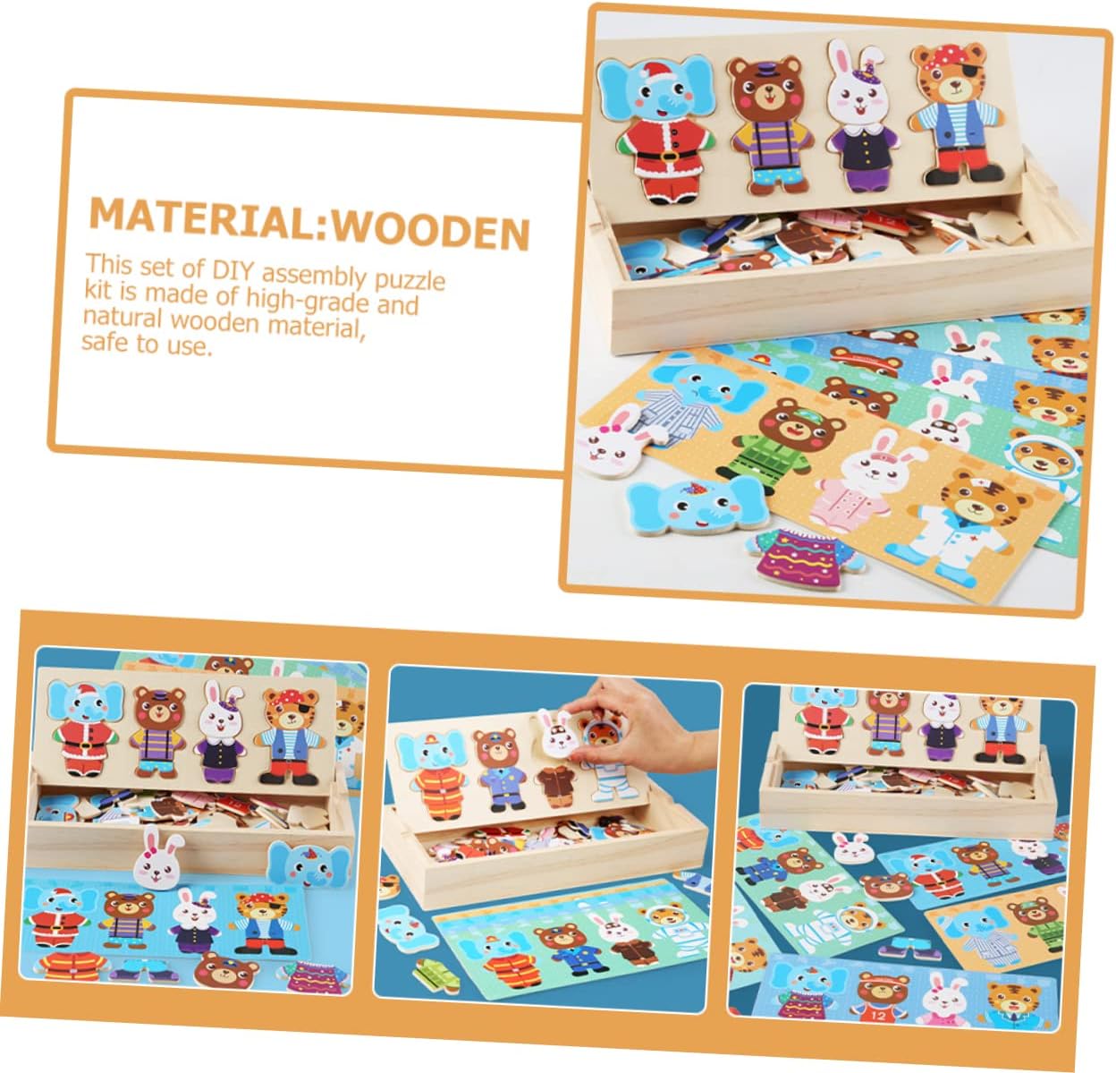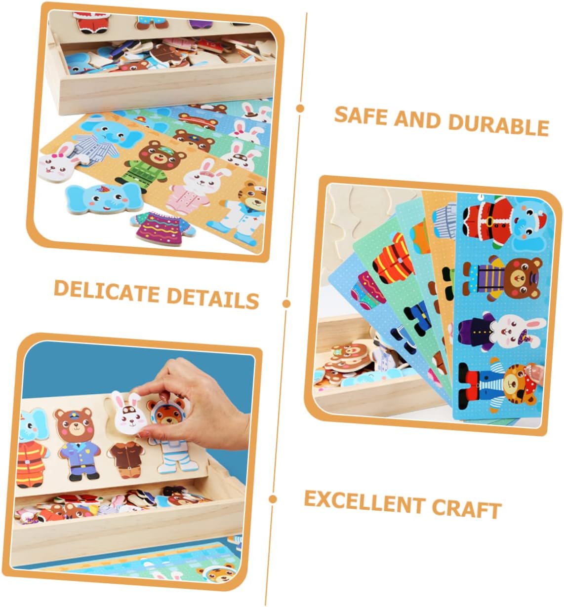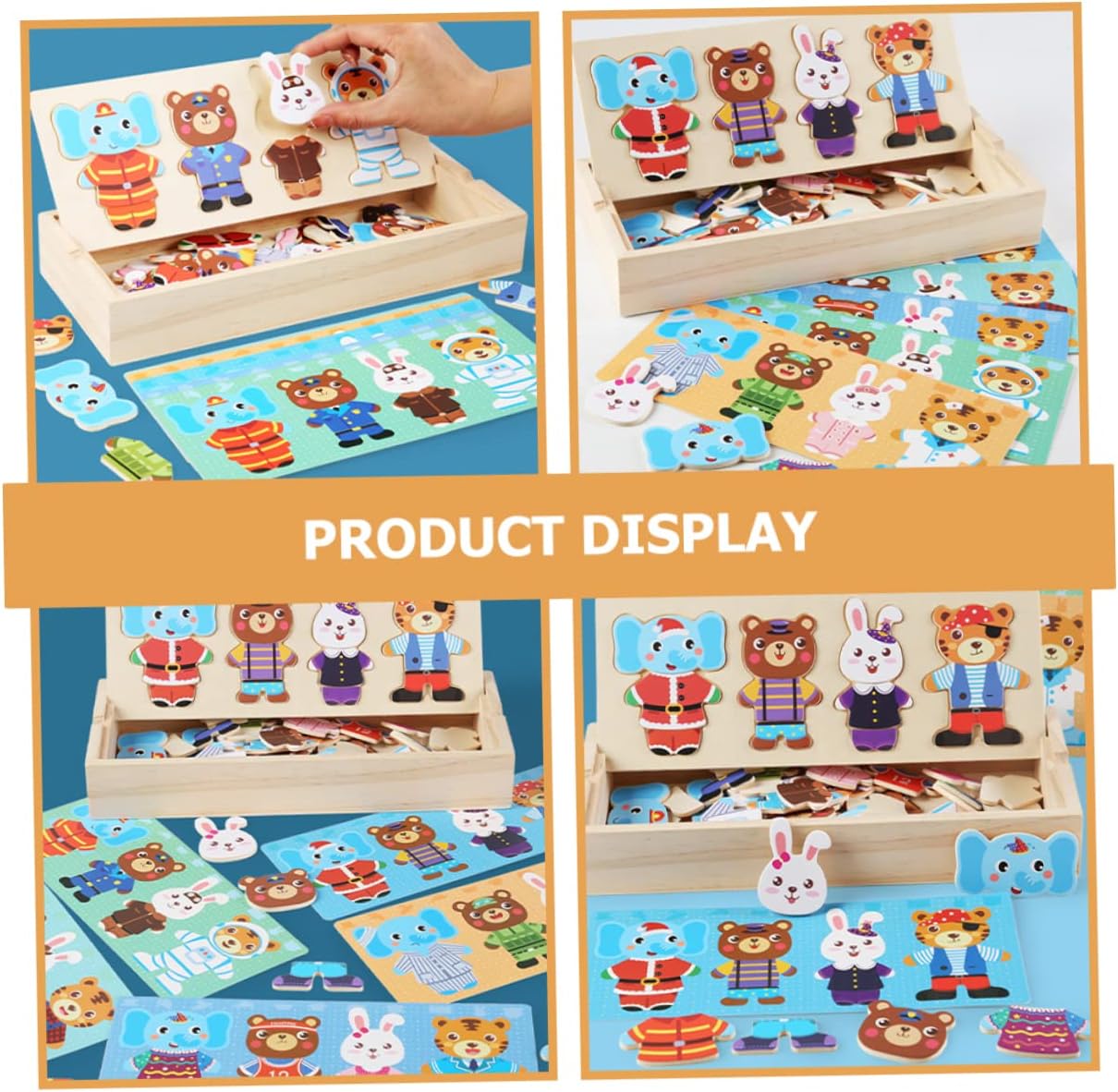 Acest puzzle educativ este perfect pentru copiii de peste 3 ani, încurajându-i să exploreze creativitatea și să dezvolte abilități motorii fine prin asocierea hainelor cu diverse personaje din familia animalelor. Jucăria vine sub forma unei cutii din lemn, în care sunt incluse mai multe planșe și piese din lemn reprezentând animale simpatice precum iepurași, urși și elefanți. Copiii vor avea ocazia să creeze ținute diverse pentru fiecare personaj, potrivindu-le hainele în mod corect sau inventând combinații amuzante.
