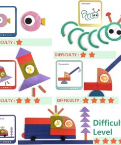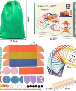 Puzzle-ul educativ Tangram din lemn cu 100 de piese este o jucărie creativă și logică, concepută pentru a stimula gândirea, răbdarea și imaginația copiilor. Cu ajutorul formelor colorate și al cardurilor model, cei mici pot recrea peste 40 de imagini diferite – animale, vehicule, obiecte și personaje – dezvoltându-și în același timp abilitățile cognitive și motrice.