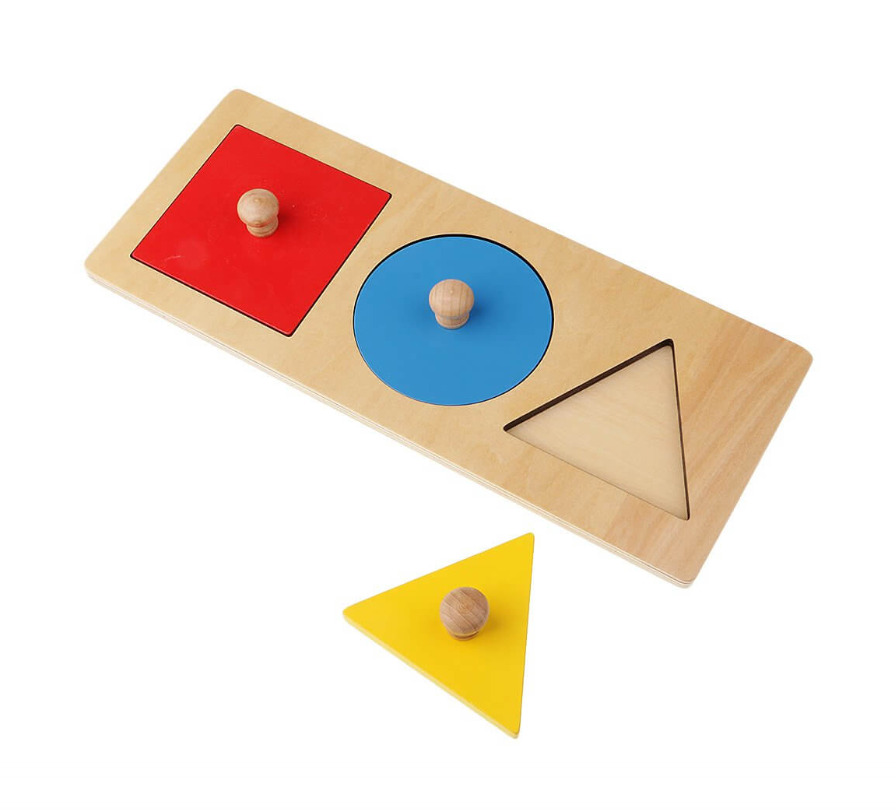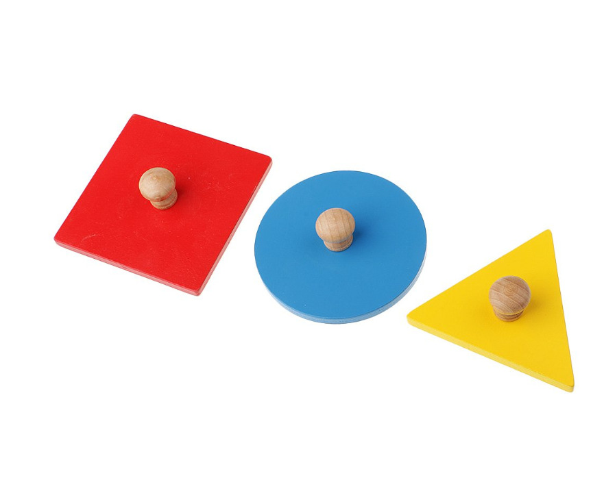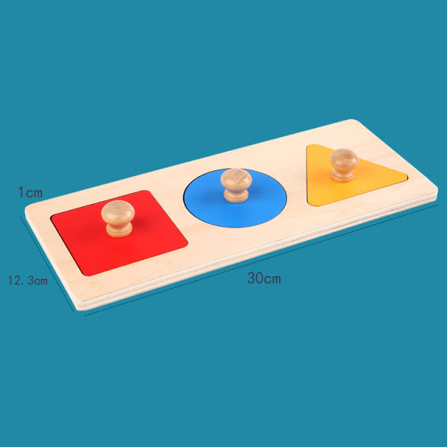 Puzzle incastru cu maner pentru invatare forme si marimi, material didactic de tip Montessori, 3 ani