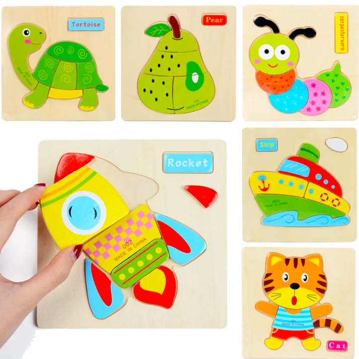 Puzzle Incastru din lemn, 6-10 piese, 3 ani