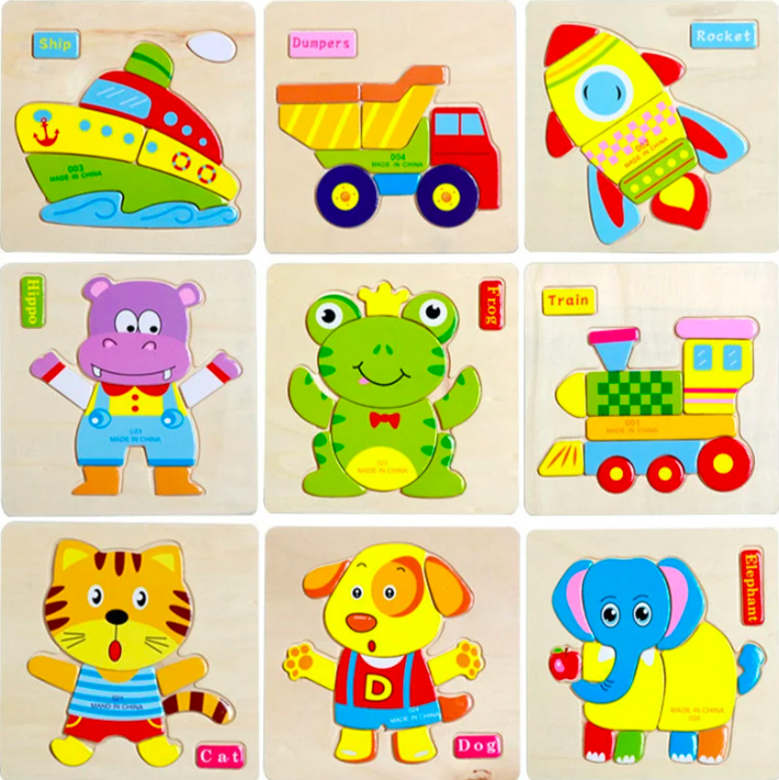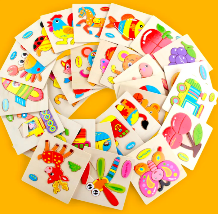 Puzzle-ul este confectionat dintr-o placa de baza din lemn, care reprezinta atat baza cat si macheta lui. Acesta este alcatuit dintr-un numar reduse de piese, atent confectionate, cu colturi rotunjite si vopsite in culori pe baza de apa. Aceasta colectie reprezinta o introducere perfecta a copiilor in lumea minunata a puzzle-urilor.
