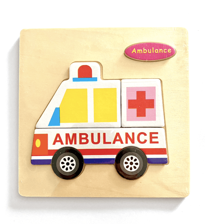 Puzzle Incastru din lemn – mijloace de transport, Ambulanta