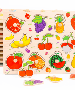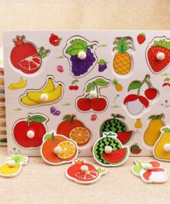 Puzzle incastru din lemn cu butoni – 11 Fructe