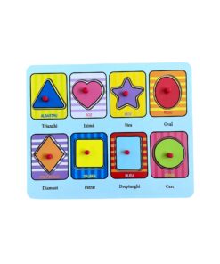 Puzzle incastru din lemn in limba romana, cu 8 piese – Forme geometrice