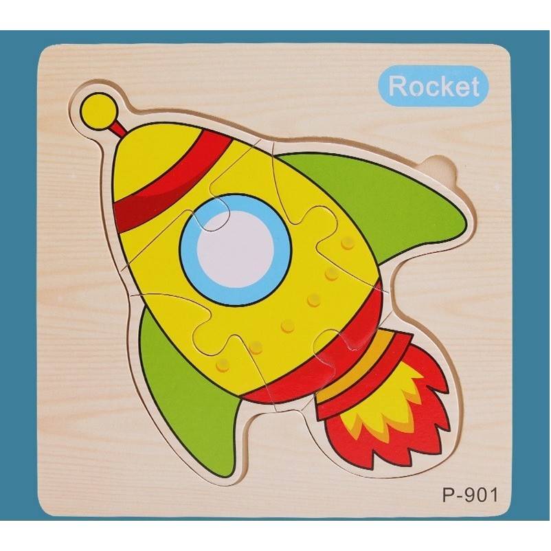 Puzzle Incastru din lemn – mijloace de transport, Racheta, 3 ani
