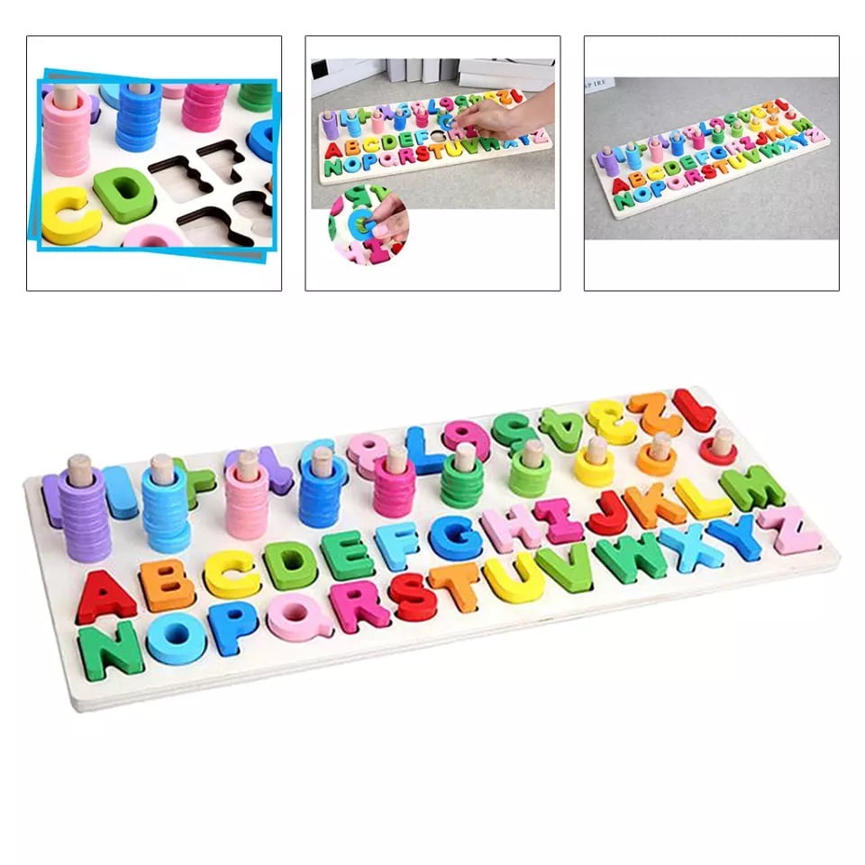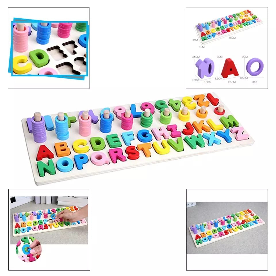 Prin utilizarea sub forma unui puzzle din lemn de tip incastru consta in identificarea formei corespunzatoare – punem piesa potrivita in forma corecta. In timp ce se joaca, copilul va invata despre litere si cifre sau poate forma cuvinte care incep cu o anumita litera. Cu ajutorul semnelor aritmetice „+”, „-„, si „=”, cei mici vor putea invata si despre operatiile aritmetice de baza, adunarea si scaderea.