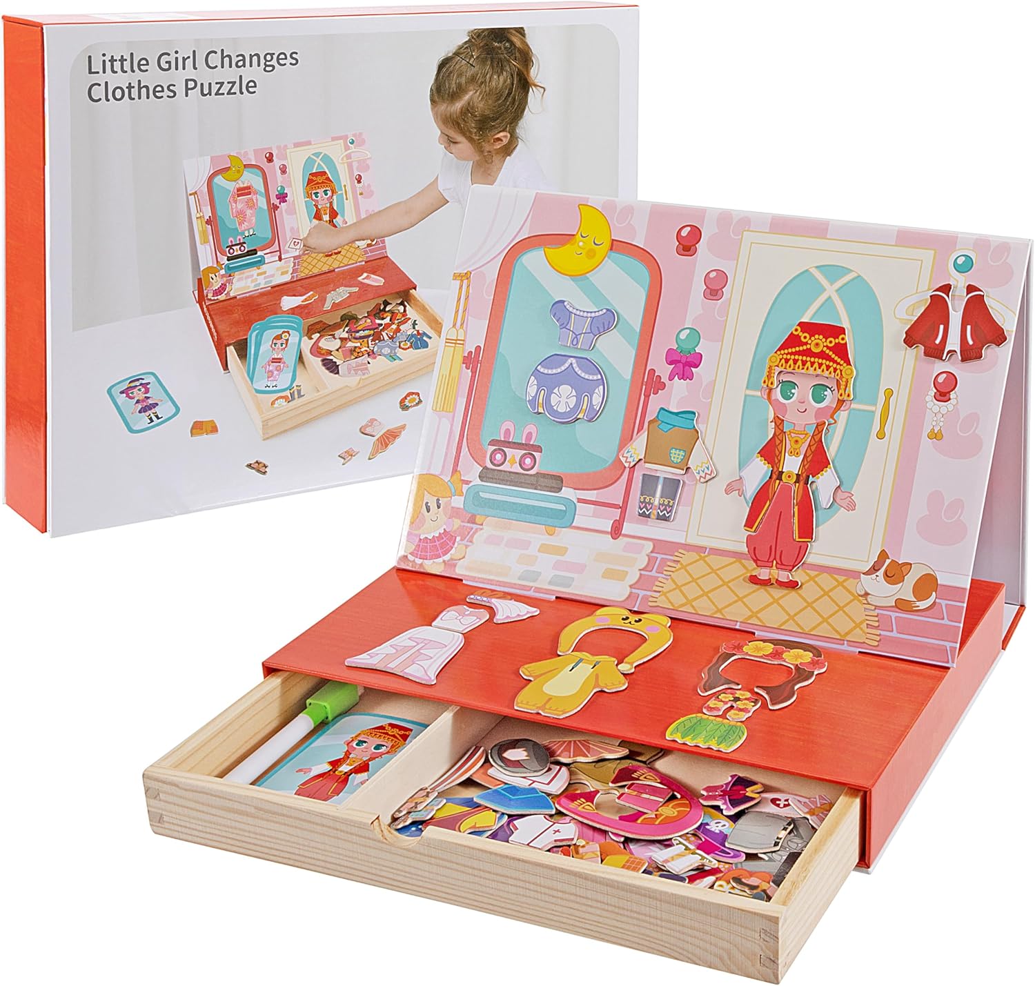 „Îmbracă fetița” este mai mult decât un puzzle – este o carte magnetică interactivă care aduce joaca creativă și educația într-o singură experiență. Un cadou ideal pentru copii de la 3 ani, care îi ajută să învețe și să se dezvolte prin joc.