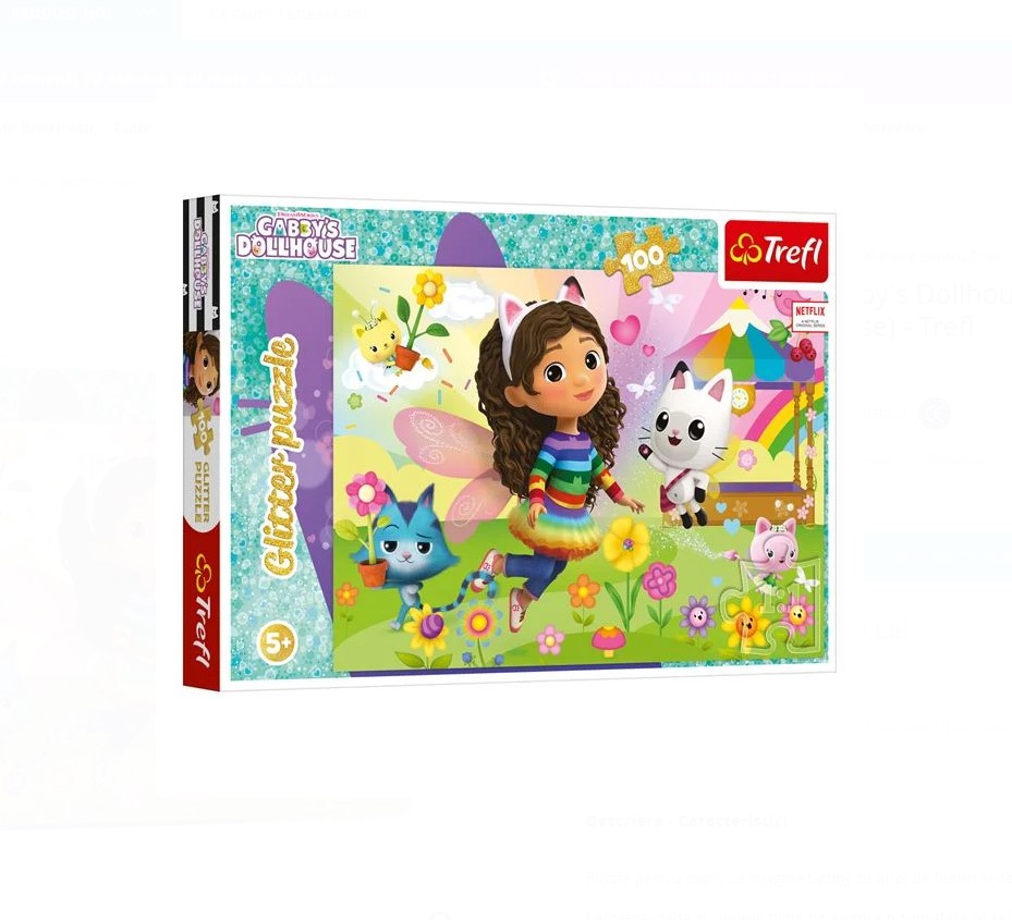 Puzzle Trefl carton 100 piese, Gabby’s Dollhouse cu sclipici