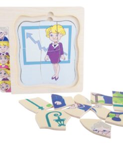 Set 6 cuburi puzzle din lemn Meserii, 18 luni+