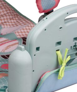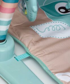 Salteluta ofera copilului dumneavoastra patru moduri diferite de a se juca. In timp ce este asezat pe spate si se joaca, copilul tau poate privi deasupra la arcul de care atarna jucarii stralucitoare si amuzante. De asemenea, el / ea va invata sa depuna efortul de a ajunge la ele si sa le apuce. Este indeajuns sa mutati arcul cu jucarii in jos pentru a se juca pe burtica sau sa cante la pian