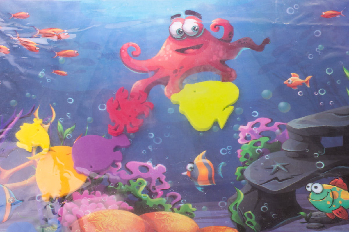 Pentru rezultate mai bune, poate fi umplut partial cu apa si partial cu aer. In interiorul covorasului sunt animale de apa colorate care se vor misca sub influenta miscarilor copilului. Pestele plutitor va interesa bebelusul si ii va atrage atentia.