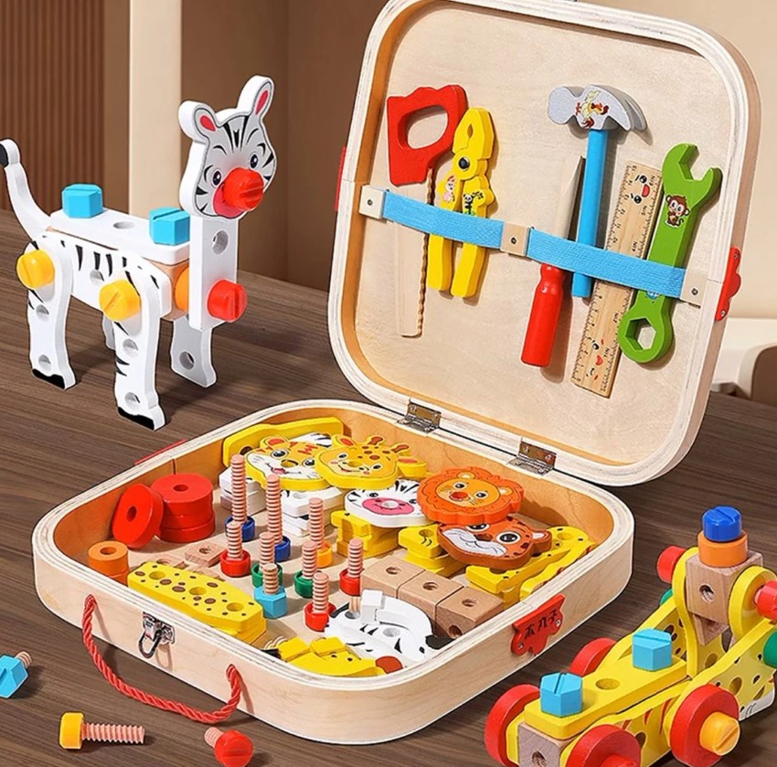 Acest set de bricolaj pentru copii este perfect pentru micii exploratori care vor să descopere lumea uneltelor și să își dezvolte creativitatea. Ambalat într-o servietă din lemn rezistent și elegant, setul oferă o experiență interactivă și educativă.