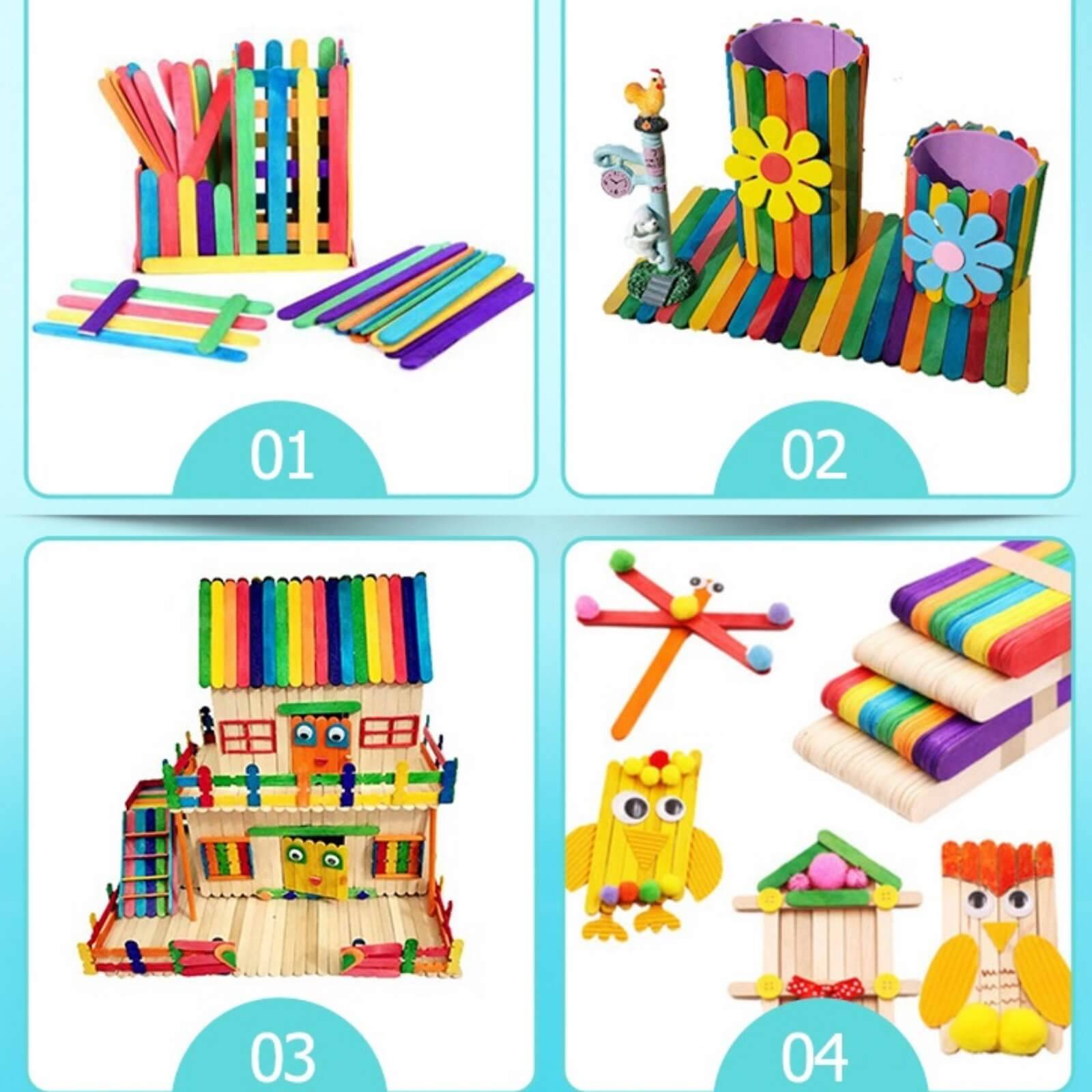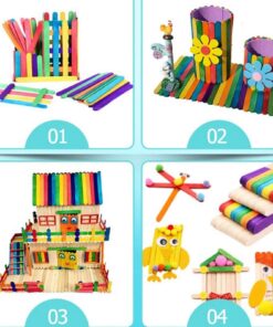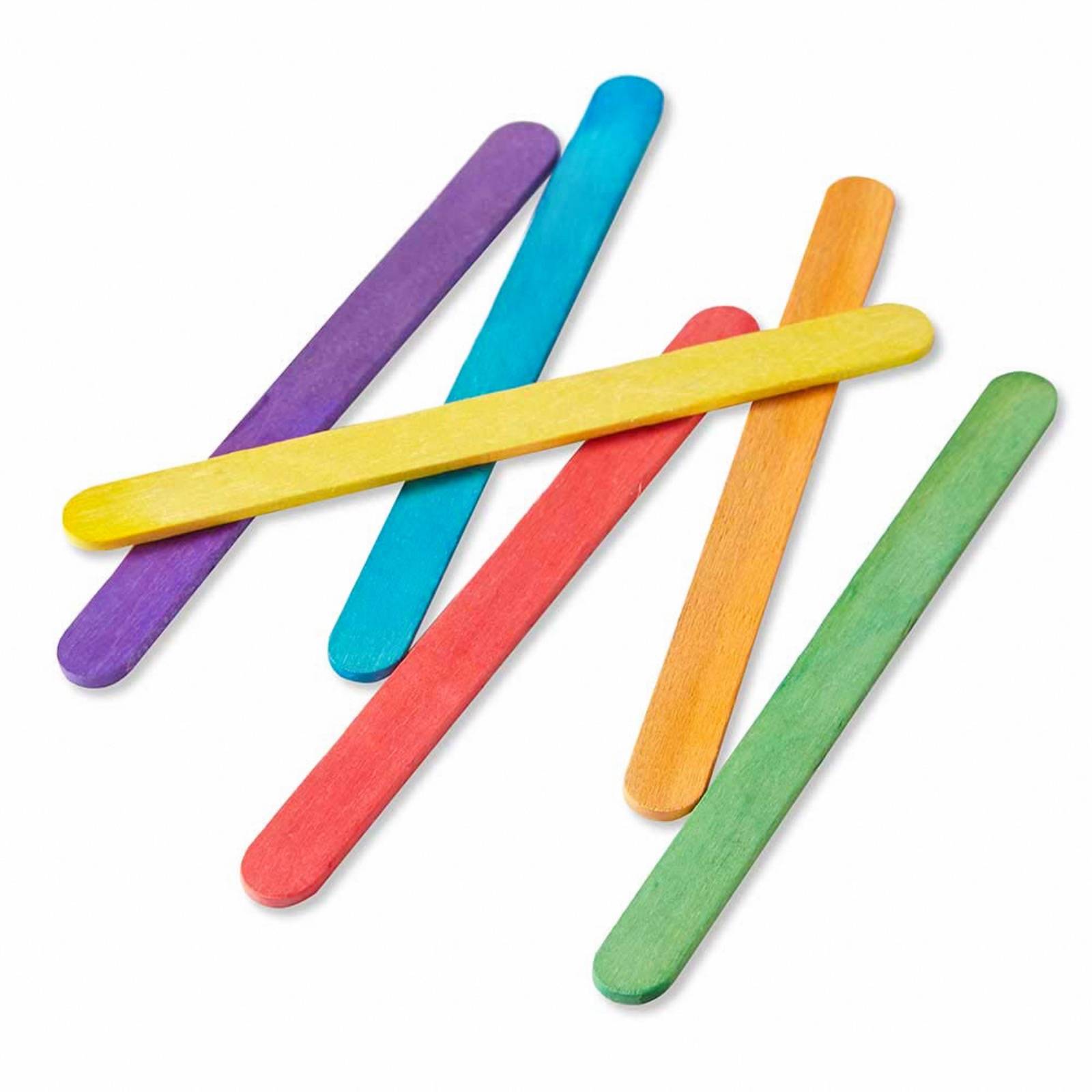Setul pentru lucru manual acasa sau la gradinita contine 100 bucati betisoare colorate in diverse culori: albastru, mov, portocaliu, galben, rosu.