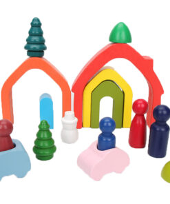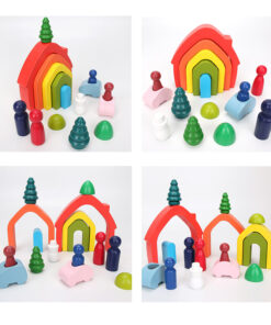 Joc de echilibru Curcubeu din lemn cu 5 piese Waldorf si 6 Cilindrii Montessori
