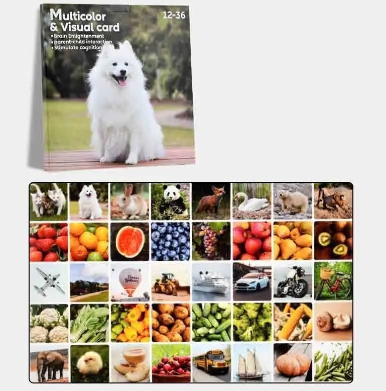 Setul de 20 carduri pentru stimulare cognitivă și vizuală este special conceput pentru bebelușii cu vârsta între 1 și 3 ani, pentru a le dezvolta atenția, memoria și capacitatea de recunoaștere a obiectelor și animalelor din jurul lor.