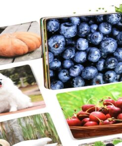 Fiecare card are dimensiunea de 13 x 13 cm, este realizat din carton gros și imprimat cu imagini clare, colorate și realiste – animale, fructe, legume, vehicule și alte elemente din viața cotidiană. Imaginile sunt alese pentru a atrage atenția copiilor și pentru a stimula procesul natural de învățare prin asociere vizuală.