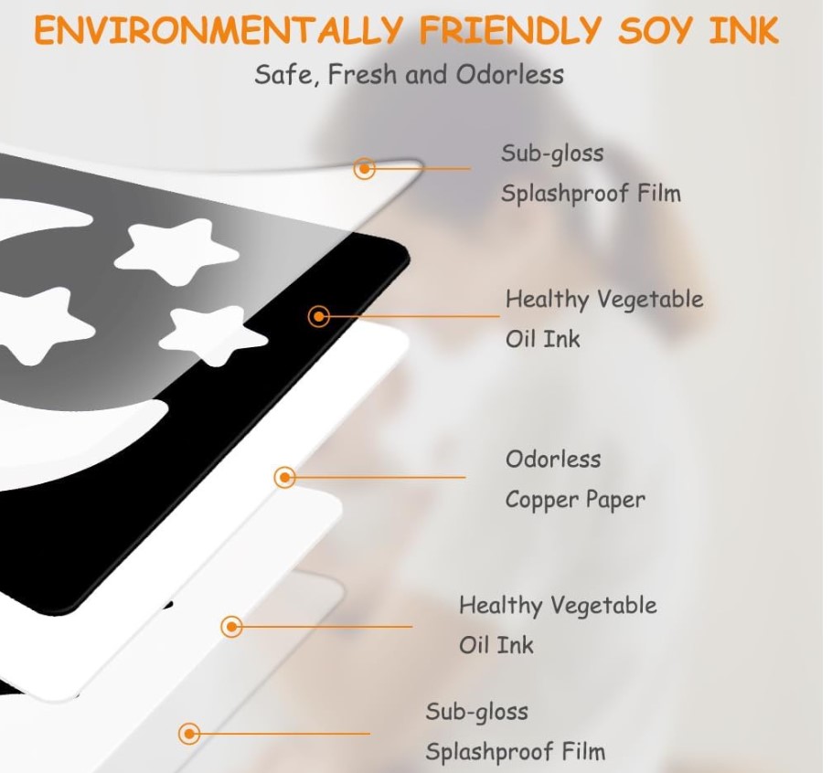 Material: carton gros, cu margini rotunjite, sigur pentru copii