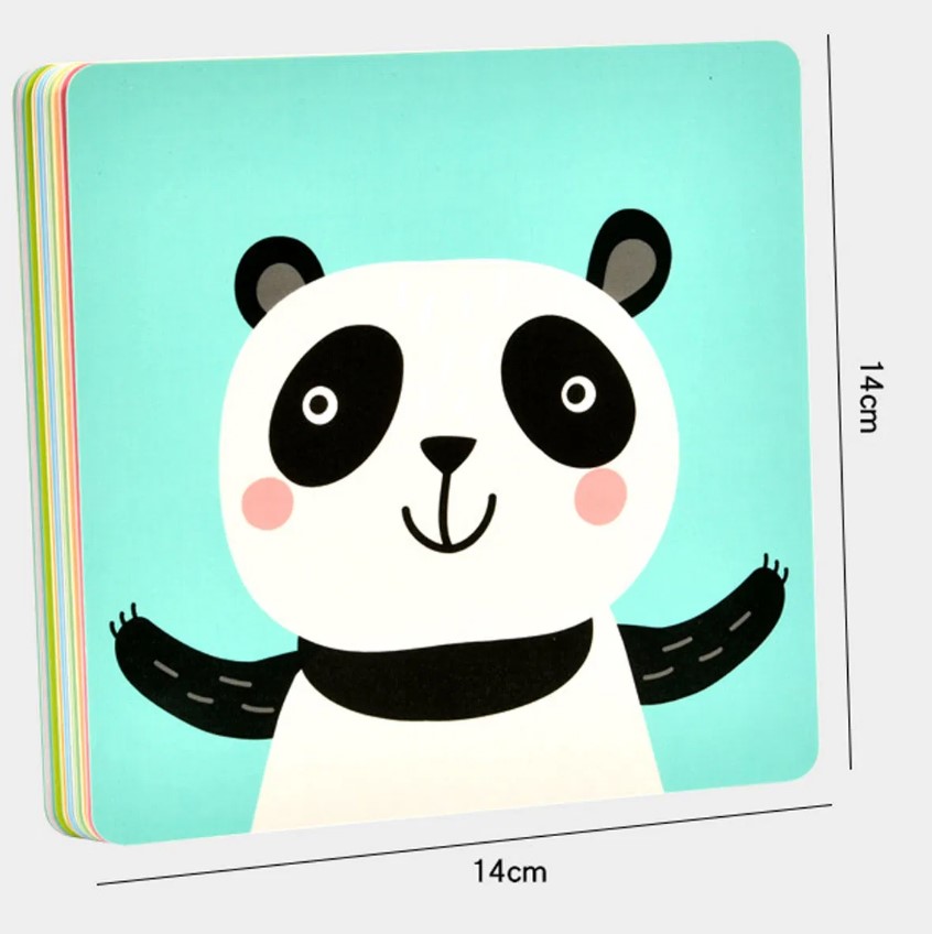 Dimensiunea cardurilor este de 14 x 14 cm, perfectă pentru a fi manevrată de către părinți în timpul interacțiunii cu copilul. Imaginile simple, cu contrast bun și culori vii, sunt alese special pentru a stimula interesul vizual și cognitiv al bebelușului încă din primele luni de viață.