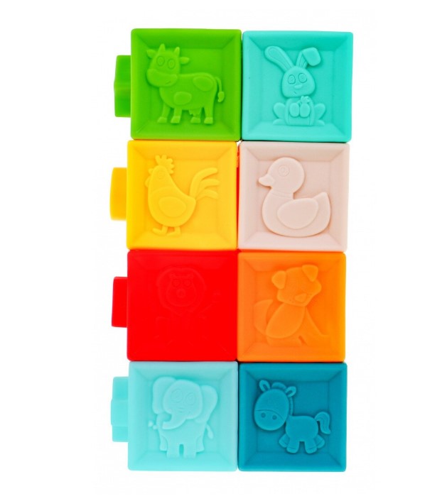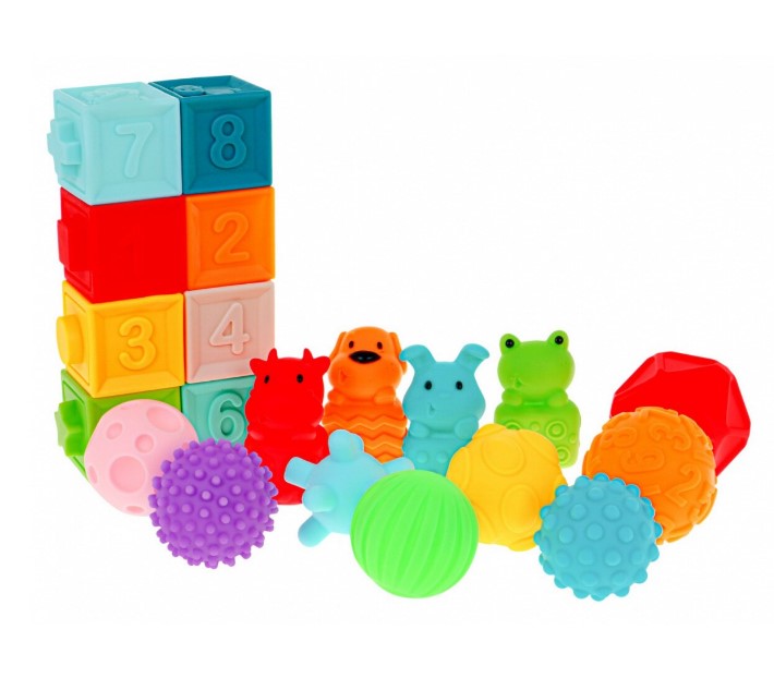 Conținut: 20 piese (cuburi, mingi texturate, figurine animale)