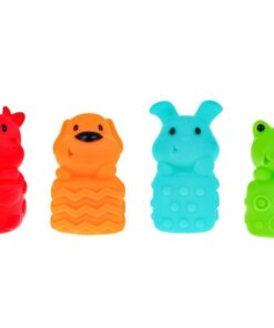 Fiecare element este realizat din silicon moale, flexibil, non-toxic, sigur pentru manipulare și pentru perioada erupției dentare. Texturile diferite stimulează explorarea tactilă și dezvoltarea sensibilității fine.