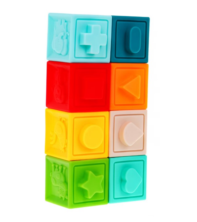 Set 20 cuburi pentru bebelusi, din silicon, cu texturi, 6 luni+