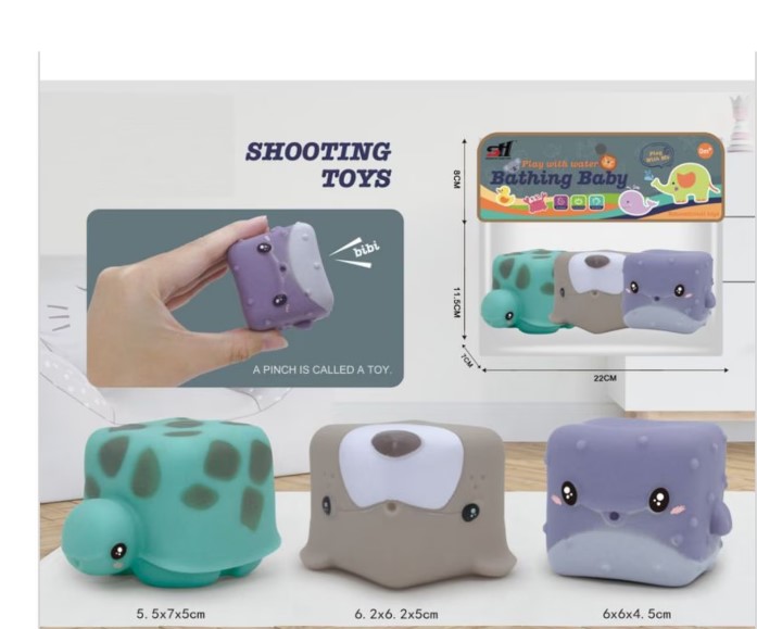 • Ideal pentru joacă în baie – poate stropi apă la apăsare