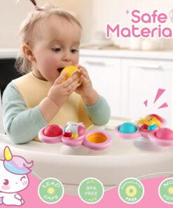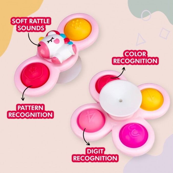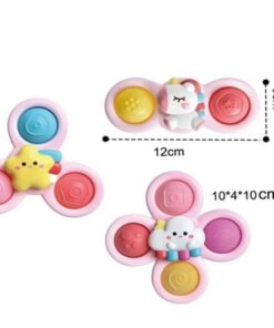 Acest set format din 3 spinnere colorate și atractive este perfect pentru bebelușii de peste 12 luni care descoperă lumea prin mișcare, atingere și culori. Prevăzute cu ventuză pe spate, aceste jucării pot fi fixate ușor pe suprafețe netede (masă, gresie, cădiță, geam), oferind distracție garantată atât acasă cât și în deplasare.