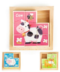 Set 3 puzzle cubic din lemn – Animale, 9 cuburi