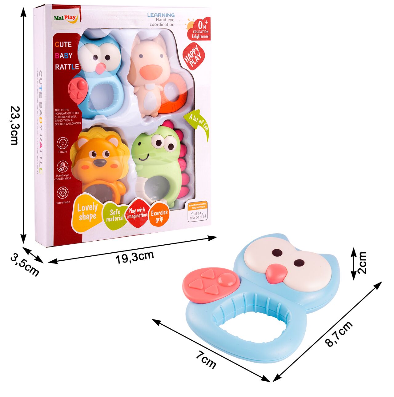 Jucaria senzoriala este ideala pentru gingiile inflamate si umflate in timpul dentitiei ajuta la dezvoltarea timpurie a motricitatii fine si senzoriale. Ii va ajuta pe bebelusi sa isi exerseze flexibilitatea mainilor, astfel ca va favoriza dezvoltarea abilitatilor motorii fine si coordonarea mana-ochi prin prinderea de maner a jucariei.