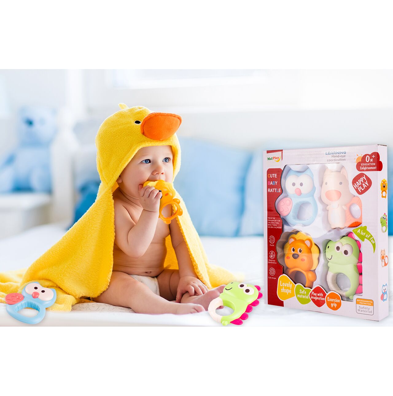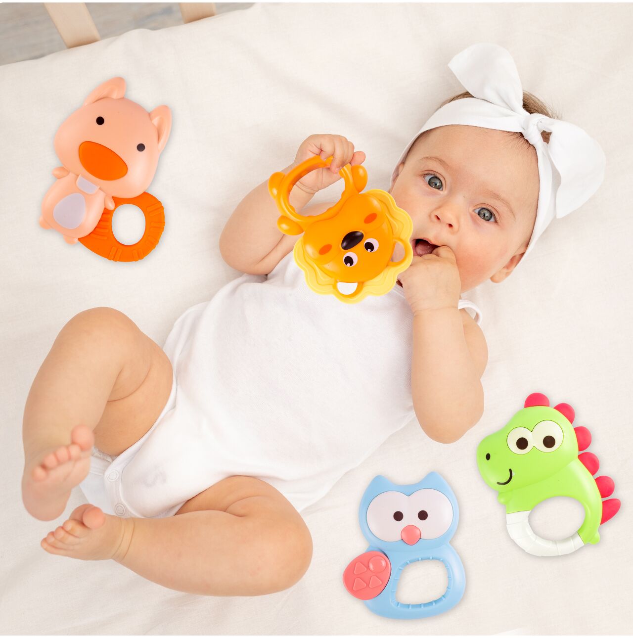 Set 4 Jucarii de dentitie, motricitate, senzoriale pentru bebelusi, 0 LUNI+