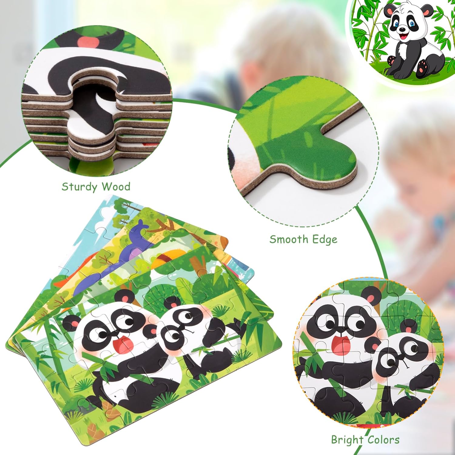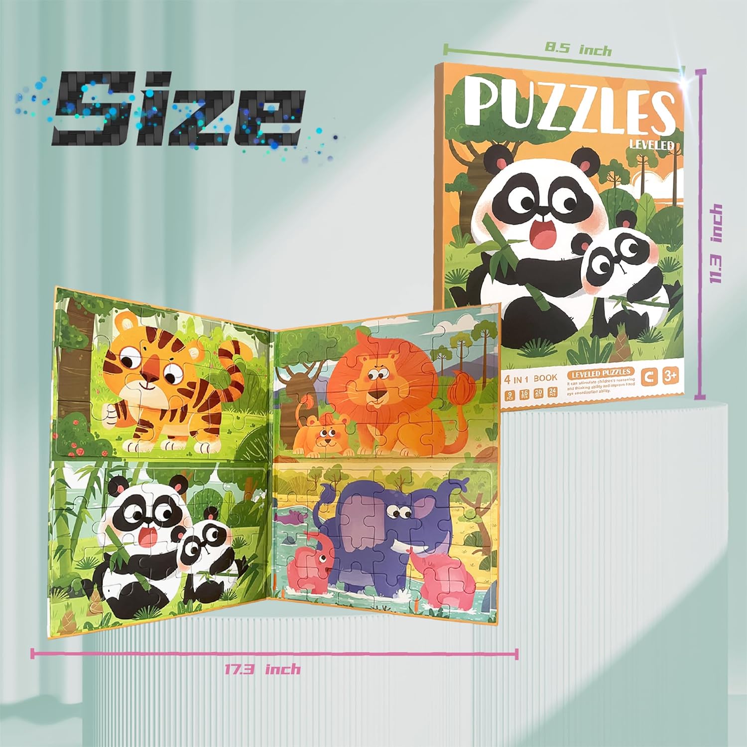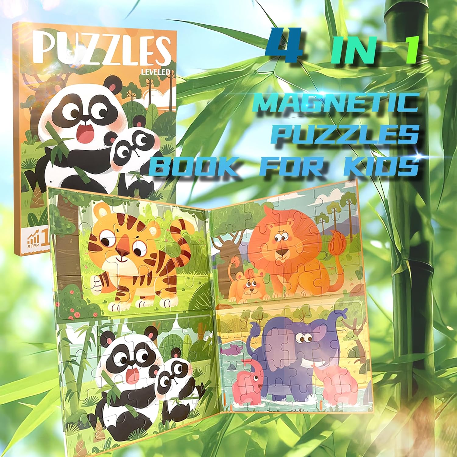 Setul conține 4 puzzle-uri magnetice cu tematică animale sălbatice, ideale pentru copiii de la 3 ani în sus. Fiecare puzzle are un număr diferit de piese (9, 16, 20 și 24), ceea ce îi ajută pe cei mici să progreseze treptat de la modele simple la modele mai complexe. Piesele sunt colorate, sigure și realizate din lemn rezistent cu margini netede, prevăzute cu strat magnetic pentru o fixare stabilă.