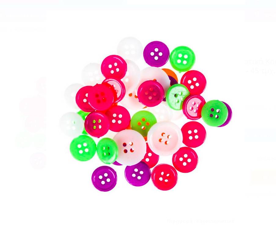 Setul pentru lucru manual acasa sau la gradinita contine 40 nasturi colorati in diverse marimi si culori: albastru, mov, portocaliu, galben, rosu.