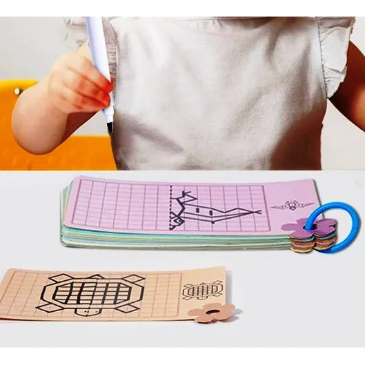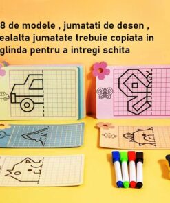 Descriere: Acest set de desen creativ este special conceput pentru a dezvolta coordonarea mână-ochi, motricitatea fină și simțul estetic al copiilor cu vârsta de peste 3 ani. Fiecare planșă prezintă modele atractive, iar jumătatea desenată îi provoacă pe cei mici să copieze în oglindă pentru a completa imaginea.