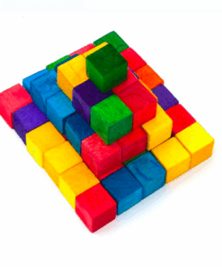 Set 49 cuburi colorate din lemn pentru activitati senzoriale si lucru manual