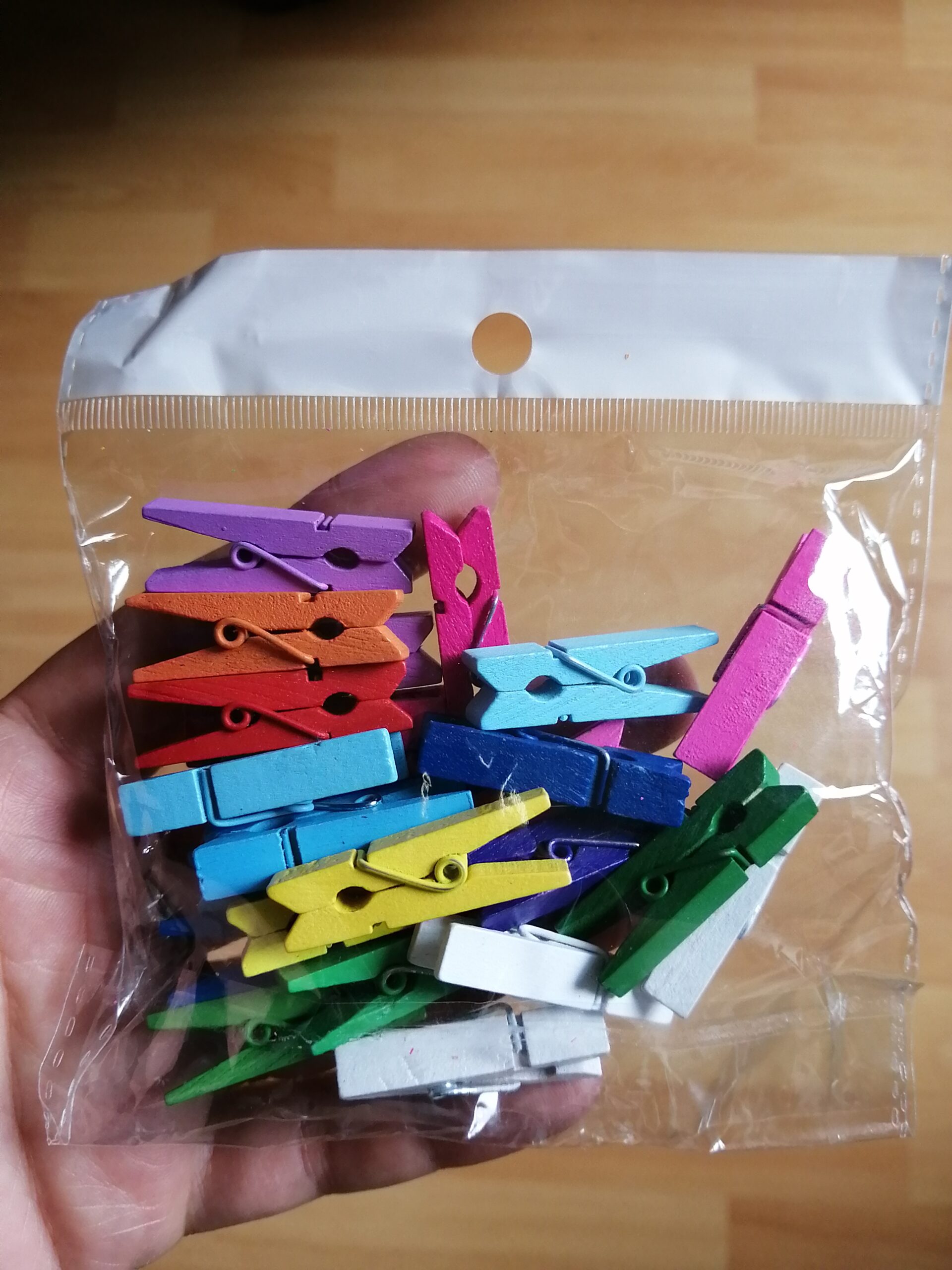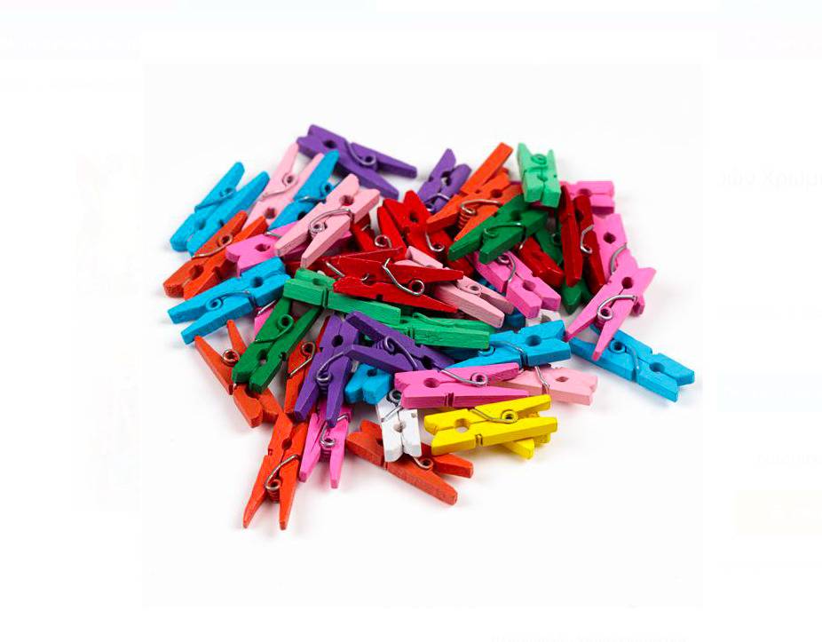 Set 50 carlige colorate din lemn pentru activitati senzoriale de tip Montessori si lucru manual