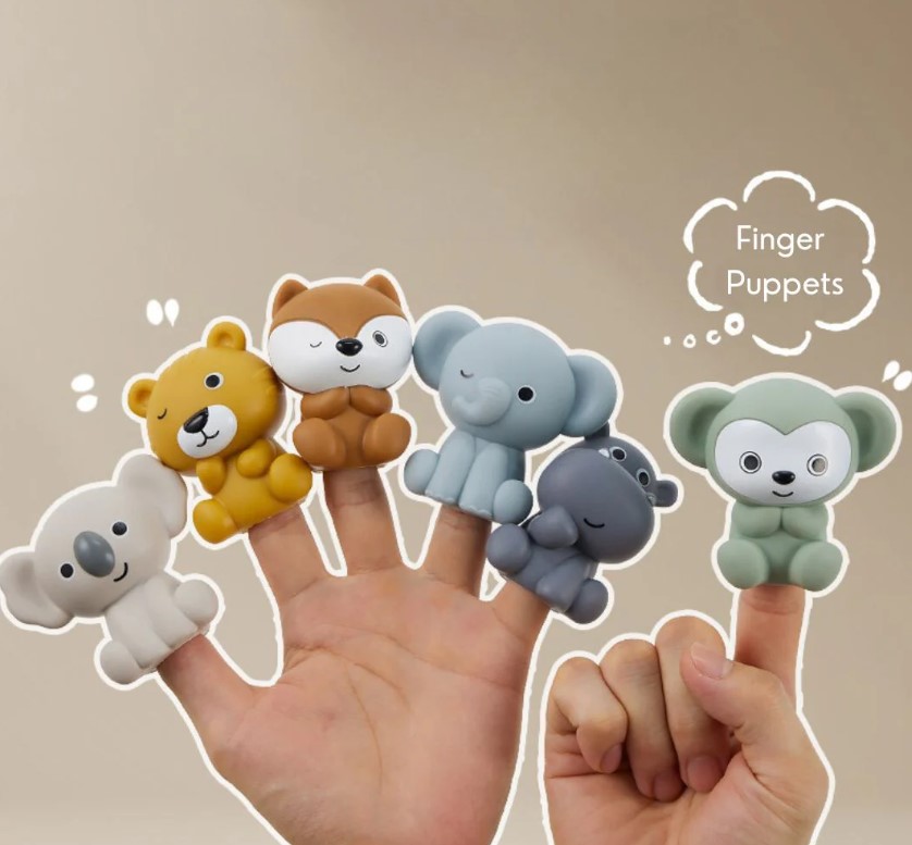 Acest set de 6 păpuși de mână din silicon este conceput special pentru copiii mici, începând cu vârsta de 18 luni. Fiecare păpușă reprezintă un animal diferit, prietenos și ușor de recunoscut de către cei mici, fiind ideală pentru jocul de rol, povestiri interactive și dezvoltarea limbajului.