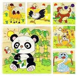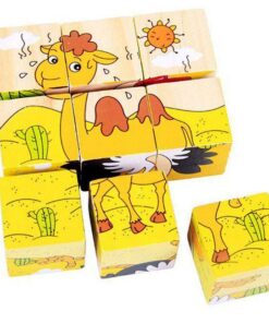 Set 6 puzzle cubic din lemn – Animale salbatice, 9 cuburi