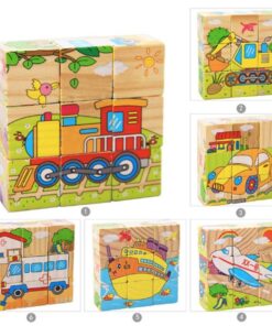 Set 6 puzzle cubic din lemn – Mijloace de transport, 9 cuburi