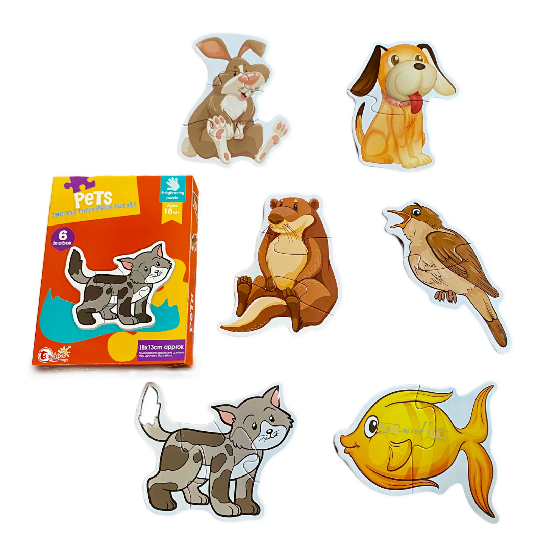 Set 6 puzzle-uri bebelusi din 2 sau 3 piese mari – Animale de comapanie, 18 luni