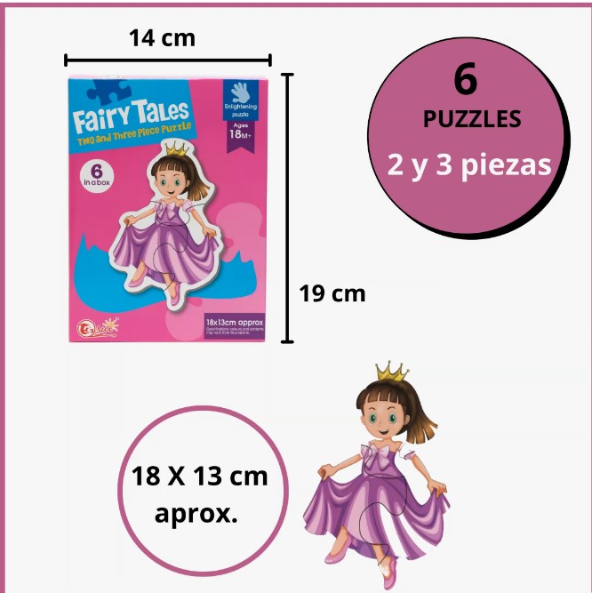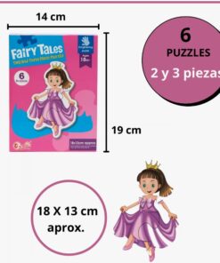 Acest set de 6 puzzle-uri cu personaje de poveste este special conceput pentru bebeluși și copii mici de la 18 luni. Fiecare puzzle are doar 2 sau 3 piese mari, ușor de manevrat, fiind ideal pentru primele activități de asociere și construcție. Dimensiunea fiecărui puzzle complet este de aproximativ 18 x 13 cm, perfect adaptată mânuțelor celor mici.